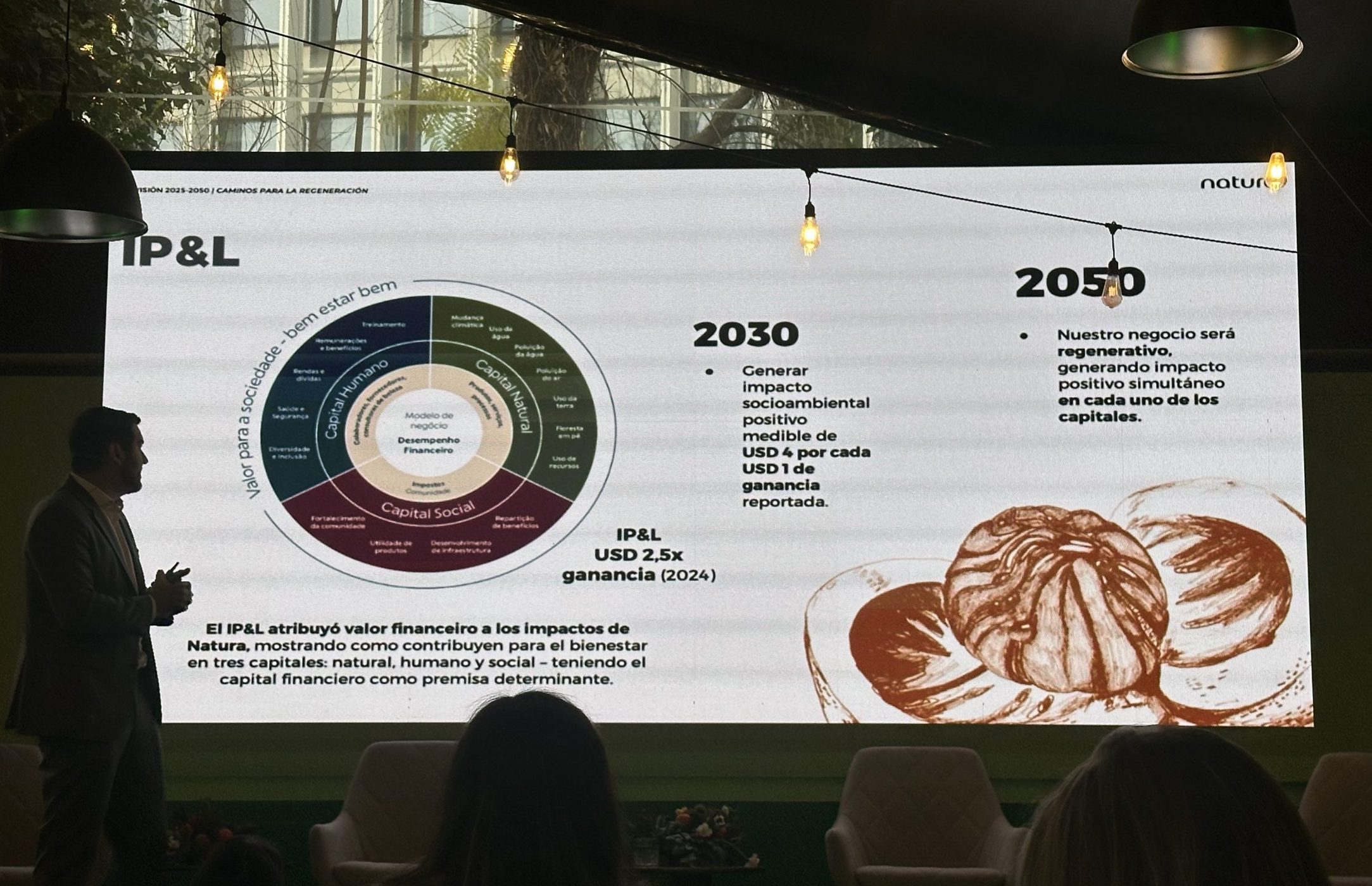 En esa misma línea, Gustavo Cruz de Moraes presentó el modelo de Integrated Profit & Loss (IP&L) que guía a Natura, el cual asigna un valor financiero a los impactos de la compañía en los capitales natural, humano y social, además del financiero.