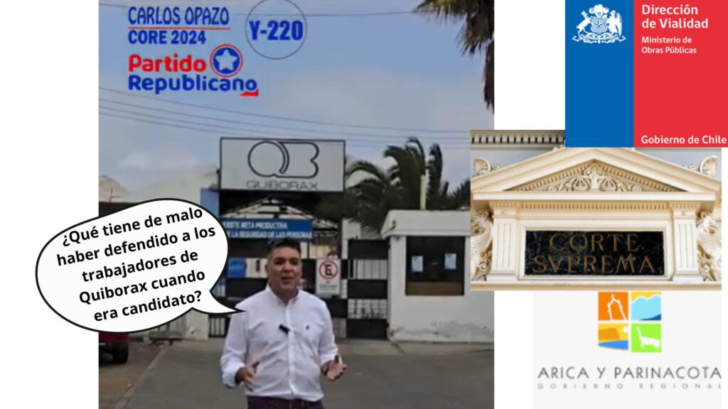 - La justicia sigue dando ciertos reveses a la administración pública. En esta nota les contamos del fallo de la Corte Suprema que ordenó reponer al abogado del Gobierno Regional, Carlos Opazo (Partido Republicano), en la Dirección Regional de Vialidad desde donde a fines de 2024 no le renovaron su contrata, justo a pocos meses de haber ido a apoyar al exdirector regional de Vialidad, Roonie Focacci, condenado por cohecho.