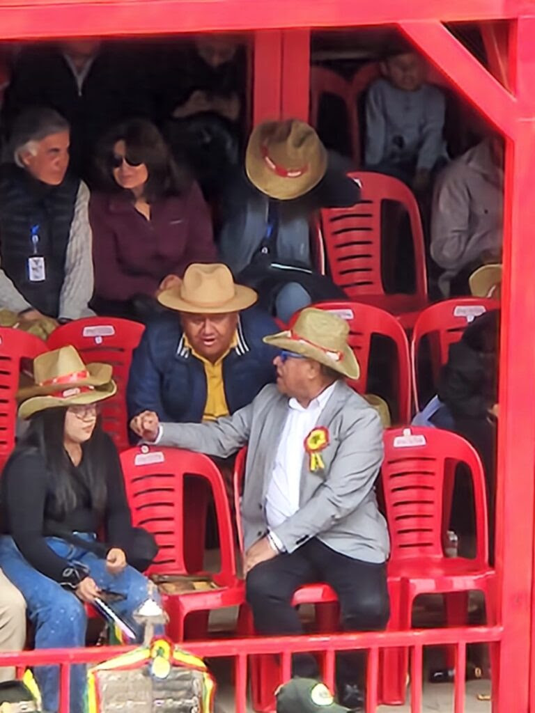 El alcalde de Arica en uno de los palcos principales del Carnaval de Oruro (Crédito imagen: cedida).