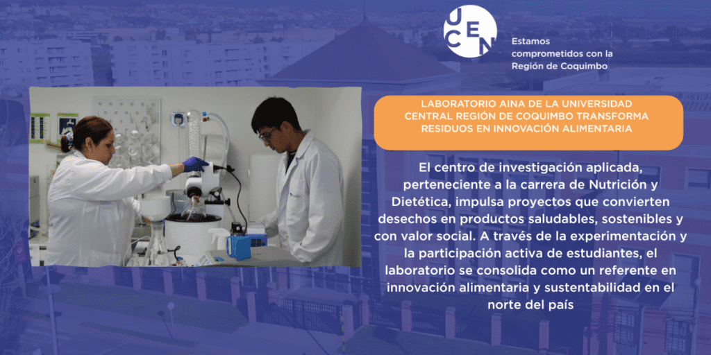 En la Región de Coquimbo, el Laboratorio AINA (Alimentos, Innovación y Nutrición Avanzada) de la Universidad Central se ha posicionado como un referente en sustentabilidad e investigación aplicada. Desde la carrera de Nutrición y Dietética, estudiantes y académicos desarrollan proyectos que transforman residuos alimentarios en productos innovadores y ecoamigables, como acuarelas comestibles elaboradas con descarte de betarraga y almidón de maíz, y gomitas con compuestos prebióticos que favorecen la flora intestinal.