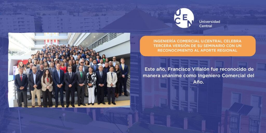 La carrera de Ingeniería Comercial de la Universidad Central sede Región de Coquimbo celebró la tercera versión del seminario «Comprometidos con la Región de Coquimbo», instancia que continúa destacando a profesionales cuyo trabajo impulsa el desarrollo regional. En esta edición, Francisco Villalón, gerente de Asuntos Corporativos y Desarrollo Sostenible de Andes Iron, fue reconocido como el Ingeniero Comercial del Año por su amplia trayectoria en los sectores público y privado.