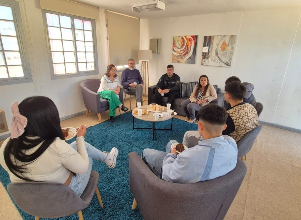 Foto referencial al interior del Centro de Internación donde se observa a la seremi de Justicia y directora del Servicio dialogando con jóvenes infractores de ley.