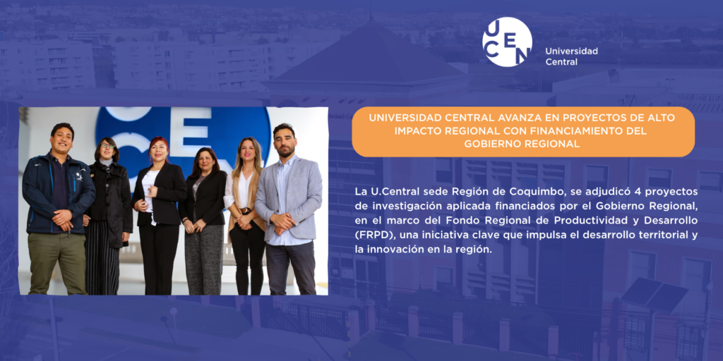 La Universidad Central de Chile, sede Región de Coquimbo, se adjudicó cuatro proyectos de investigación aplicada en el marco del Fondo Regional de Productividad y Desarrollo (FRPD), del Gobierno Regional, que financia propuestas orientadas al desarrollo territorial. Estos proyectos abordan áreas estratégicas como la incorporación de inteligencia artificial en educación, el fortalecimiento de sistemas alimentarios sostenibles, la valorización de relaves mineros desde la economía circular y la promoción de una atención en salud con enfoque de derechos.
