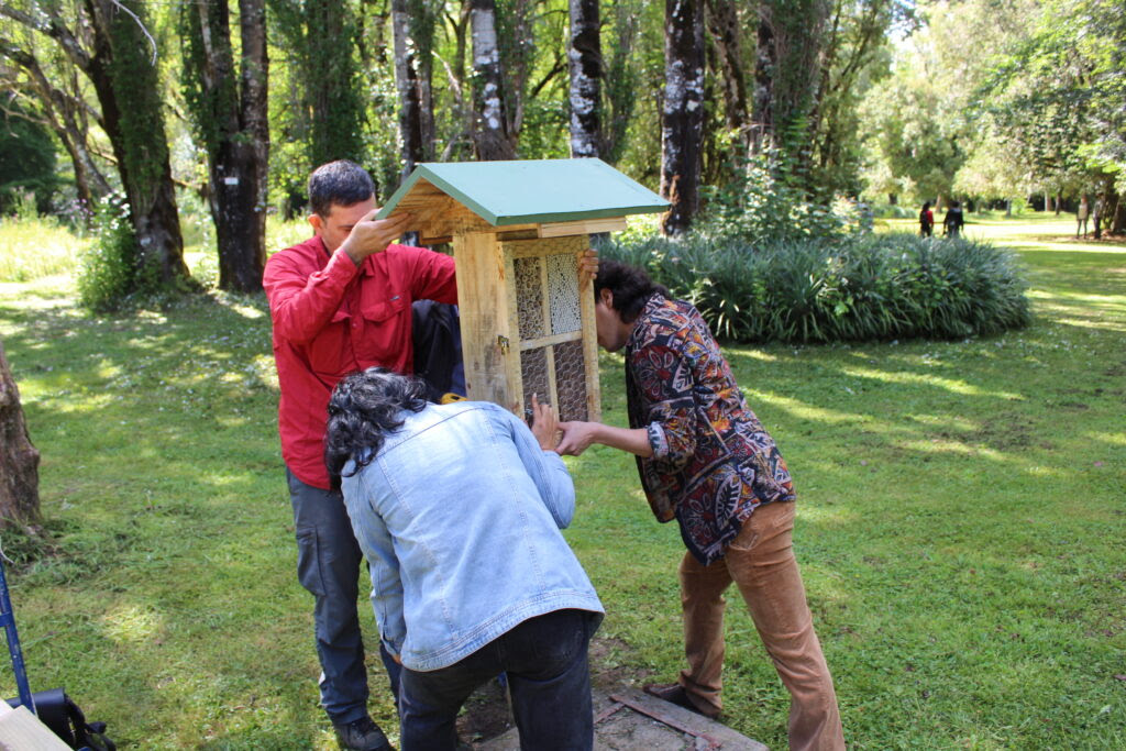 Junto al profesor patrocinante, Dr. Esteban Basoalto, y la Encargada del Laboratorio de Entomología de la Facultad de Ciencias Agrarias y Alimentarias UACh, Leticia Silvestre, instalaron estos dispositivos en el Jardín Botánico UACh.