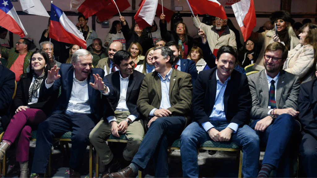 28-08-2024. Lanzamiento de la campaña a alcalde de Valparaíso de Rafael González. En la foto, de izquierda a derecha: la diputada Chiara Barchiesi, el candidato presidencial José Antonio Kast, González, el entonces candidato a gobernador regional Francesco Venezian, el candidato al Senado por Valparaíso Arturo Squella y el diputado Luis Sánchez. Foto: Pablo Ovalle / Agencia Uno.