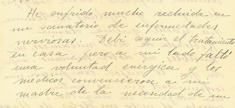 “(…) He sufrido mucho recluida en un sanatorio de enfermedades nerviosas. Debí seguir el tratamiento en casa, pero a mí lado faltó una voluntad enérgica y los médicos convencieron a mi madre de un aislamiento total.” (Margarita Ferreras)