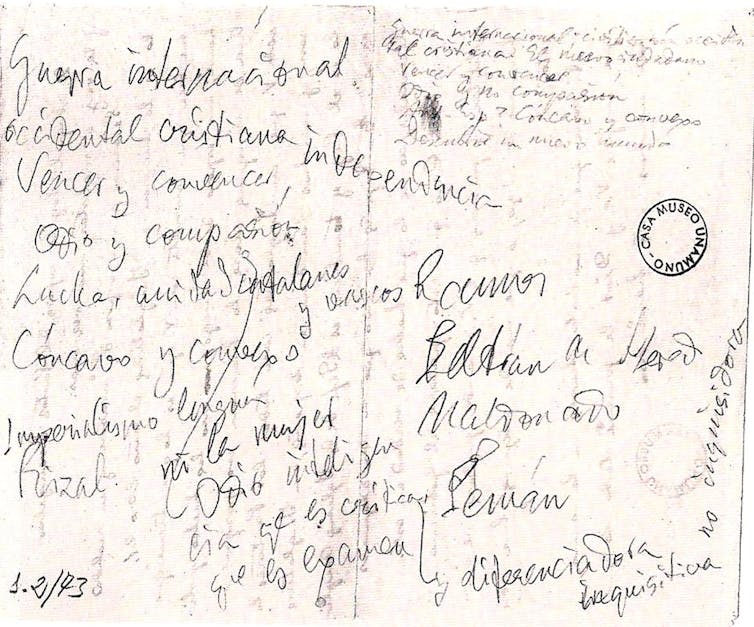 Pero no es en el texto de esta carta donde reside el único interés de la misiva, sino en su reverso. El carácter singular de esta epístola es que Unamuno la utilizó para realizar las anotaciones que dieron lugar al famoso discurso del 12 de octubre de 1936 en el Paraninfo de la Universidad de Salamanca. Aquel en el que el escritor y filósofo pronunció la famosa frase: “Venceréis pero no convenceréis”.