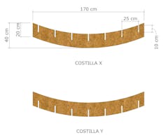 La estructura consistirá en placas alargadas de cartón corrugado paralelas a la dirección X (que llamamos costillas X) y otras paralelas a la dirección Y (costillas Y), formando un retículo cuadrado.