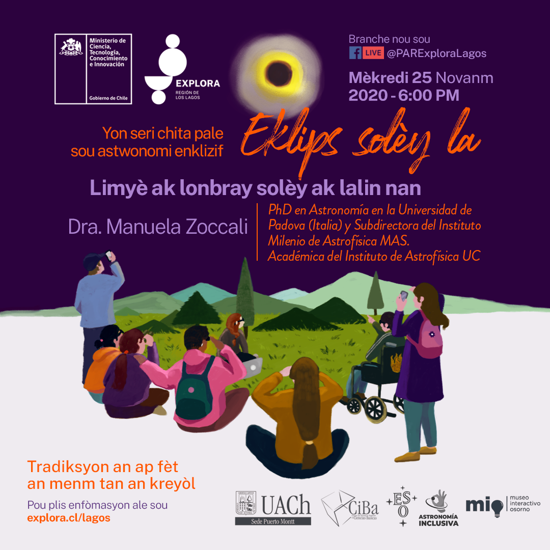 La iniciativa es desarrollada desde agosto por el Proyecto Explora Los Lagos del Ministerio de Ciencia, Tecnología, Conocimiento e Innovación junto al Centro de Docencia Superior en Ciencias Básicas de la Universidad Austral de Chile Sede Puerto Montt y el apoyo del Observatorio Europeo Austral, la Agrupación Astronomía Inclusiva y el Museo Interactivo de Osorno, quienes organizaron un ciclo de charlas online “Eclipsados por el Sol” que cuenta con interpretación en Lengua de Señas Chilena en vivo y en esta oportunidad contará con interpretación simultánea