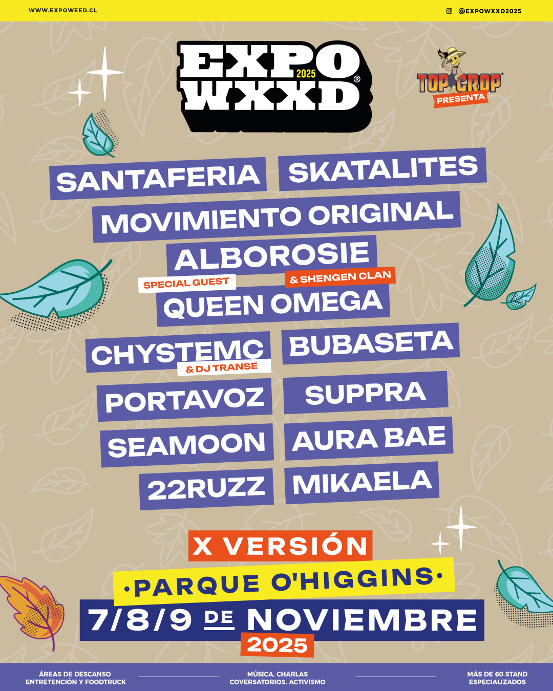 Expoweed, la primera feria cannábica de Latinoamérica, regresa durante los días 7, 8 y 9 de noviembre en el Parque O’Higgins, para celebrar diez versiones en el marco de sus 14 años de recorrido cultural, resistencia y comunidad. Este año el Festival no solo es un evento de música y entretenimiento, sino que también se compromete con la comunidad y la salud, entregando atención médica gratuita para pacientes con diagnóstico oncológico.
