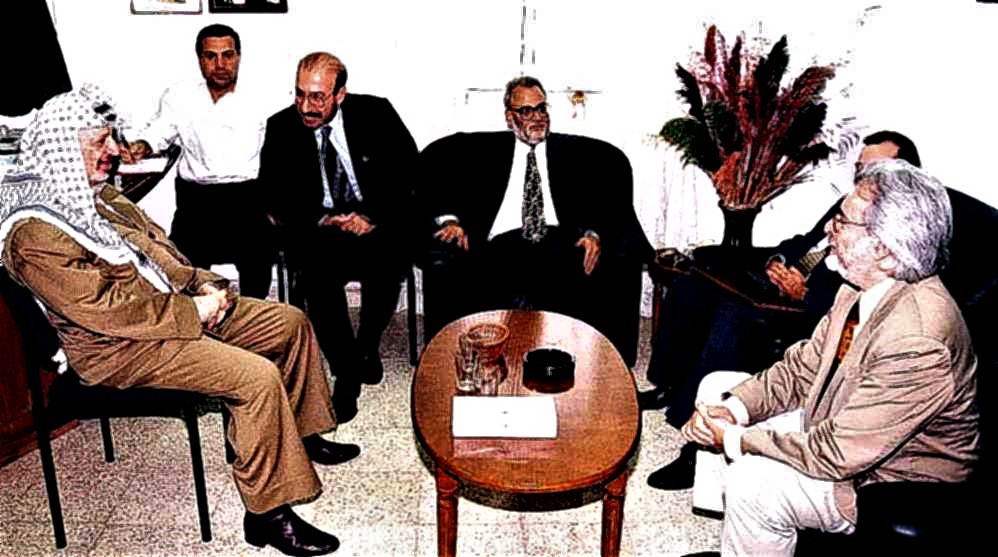 Con Arafat en Ramallah. Erekat al centro. Gentileza del autor.
