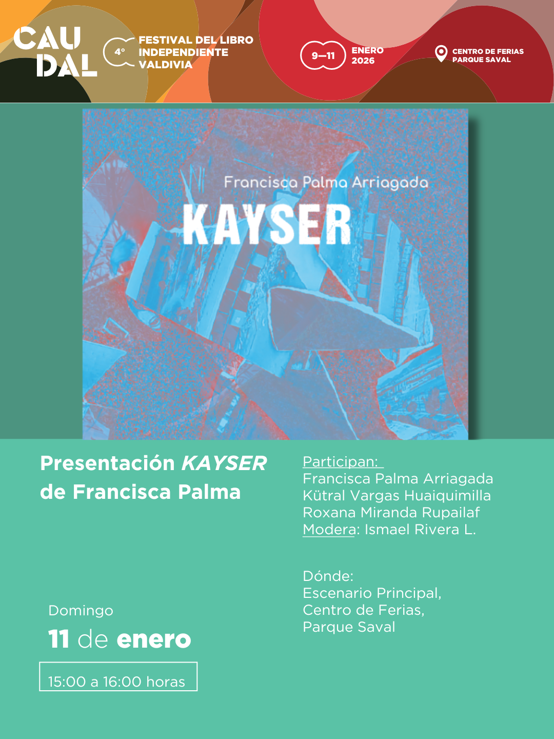 “Kayser” estará presente en la próxima edición de La Furia del Libro, que se desarrollará entre el 18 y 21 de diciembre en GAM. Prontamente, el domingo 11 de enero a las 15:00 hrs. será presentado como parte de la programación del Festival Caudal en Valdivia, ocasión en la que la autora estará acompañada de las poetas Roxana Miranda Rupailaf y Kutral Vargas Huaiquimilla.