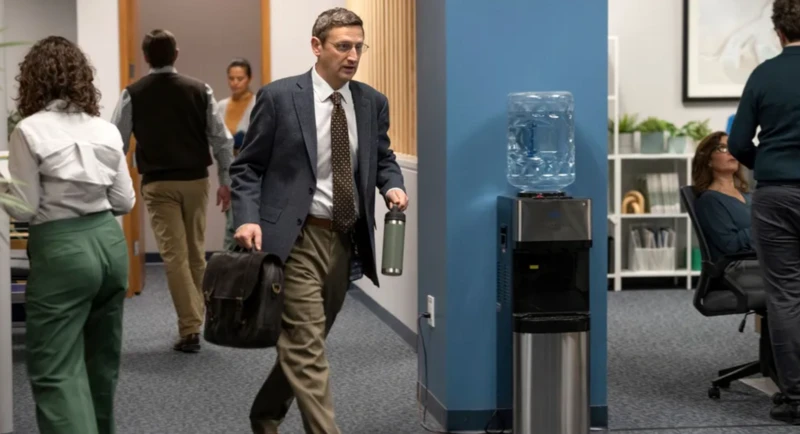 Un hombre con traje y corbata recorre una oficina donde otras personas van y vienen. Fuente de la imagen,Sarah Shatz/ HBO