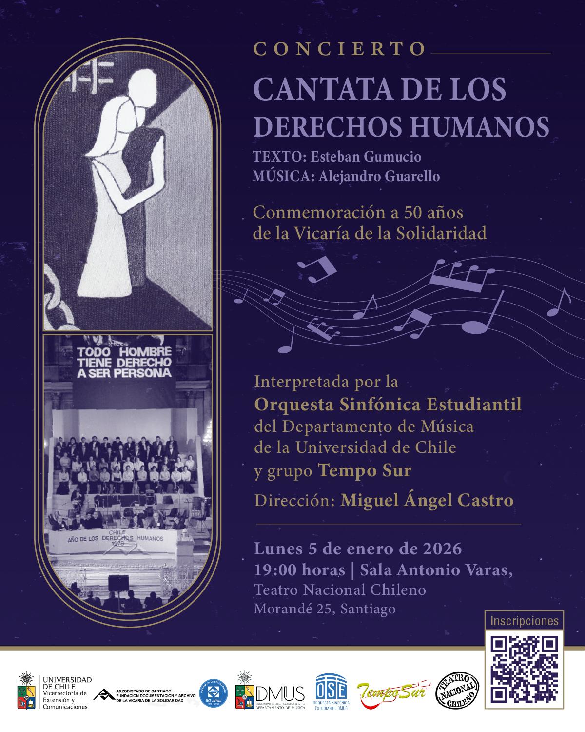 El concierto será interpretado por la Orquesta Sinfónica Estudiantil de la U. de Chile y grupo Tempo Sur, en una presentación abierta a todo público -previa inscripción- que destacará su labor en defensa de los Derechos Humanos durante la dictadura.