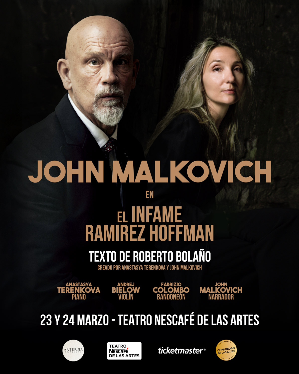 Creada por Anastasya Terenkova y John Malkovich, y con gira por Estados Unidos, Moscú, Copenhague, Chipre, Lisboa, Lima, Sâo Paulo, Río de Janeiro, más Buenos Aires, “El infame Ramírez Hoffman” funde literatura, música y actuación para plantear una pregunta incómoda: ¿puede el arte valorarse por encima de la ética?, así como una advertencia: el arte puede convertirse en un instrumento del terror.