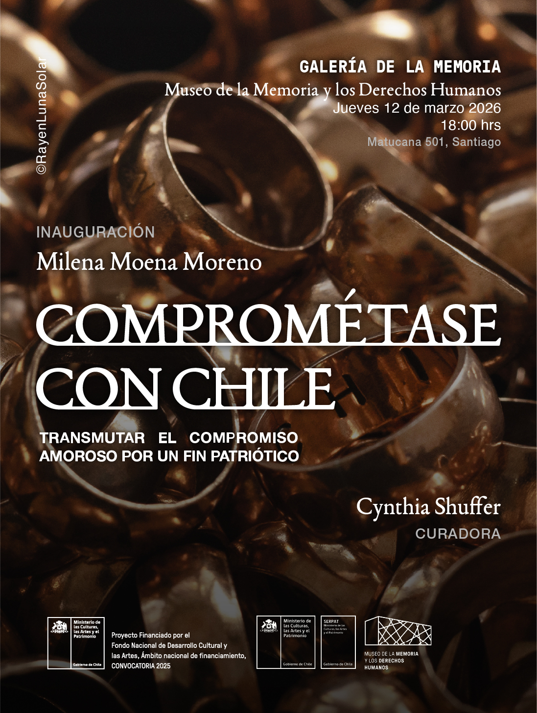¿Dónde descansan los metales de “Comprométase con Chile?” Con esta pregunta comienza la exposición “Comprométase con CHILE. Transmutar el compromiso amoroso por un fin patriótico”, que se puede ver desde el jueves en el Museo de la Memoria (Matucana 501, Metro Quinta Normal).