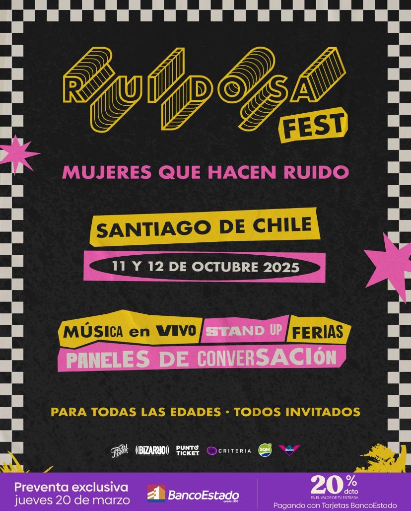 Más de 20 artistas, dos escenarios, stand up y grandes exponentes de la música latinoamericana, liderados por la talentosa y gran exponente nacional Mon Laferte, la baladista de América Myriam Hernández, la rapera Villano Antillano y la argentina Ms Nina y las destacadas artistas de nuestro país Akriilla; Javiera Mena; CAMI; Princesa Alba;; Nicole; Paula Rivas; Karla Grunewaldt; Fran Maira; Chini.png; Masquemusica; Supernova;; Laia; Catalina y las bordadoras de oro; Nekki, Javiera Electra, Daniela Millaleo; Entremares; Laia, además de la artista y fundadora de Ruidosa Fest: Francisca Valenzuela. A todas ellas se suma la presencia de dos importantes comediantes chilenas: Paloma Salas y Pamela Leiva.