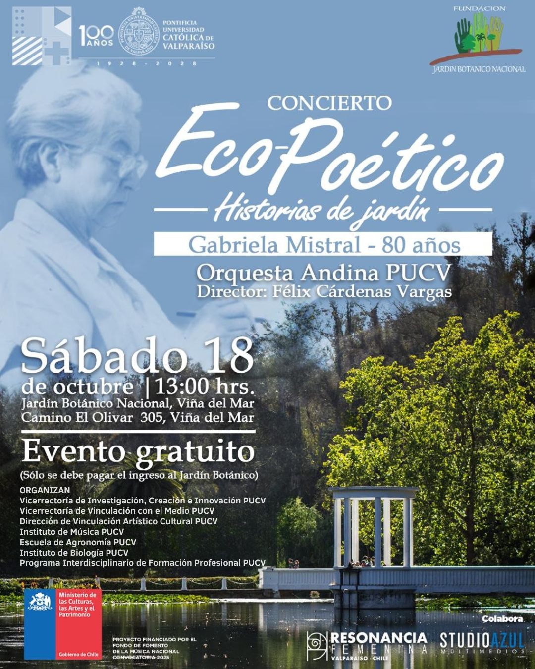 La participación musical estará a cargo de la Orquesta Andina PUCV bajo la dirección del maestro Félix Cárdenas, la cual interpretará un repertorio que conecta sonidos y naturaleza.