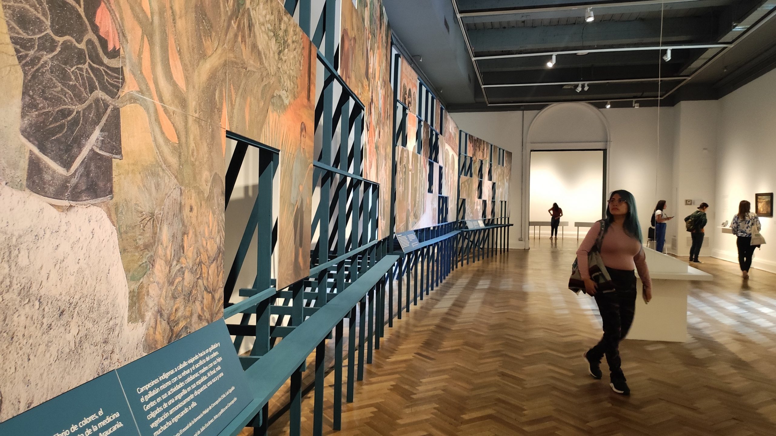 La muestra rescata su destacado aporte al muralismo, desde sus inicios como asistente en el emblemático Historia de Concepción (1946) de Gregorio de la Fuente; hasta la recuperación de su obra más distintiva, el mural Principio y fin (1970-72), monumento histórico, que fue mandado a destruir durante la dictadura.