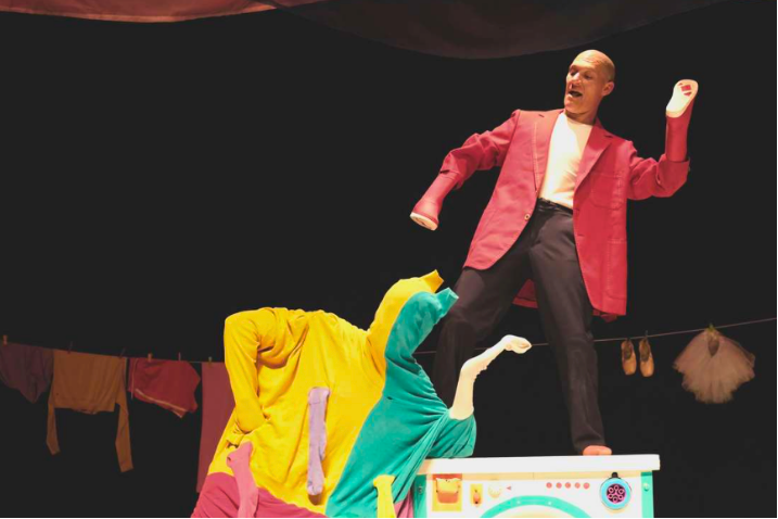 Una lavadora descompuesta da origen a un juego escénico lleno de color y movimiento. Lavarropas transforma lo cotidiano en danza y poesía, invitando a niñas y niños a descubrir la belleza del cuerpo y la imaginación.
