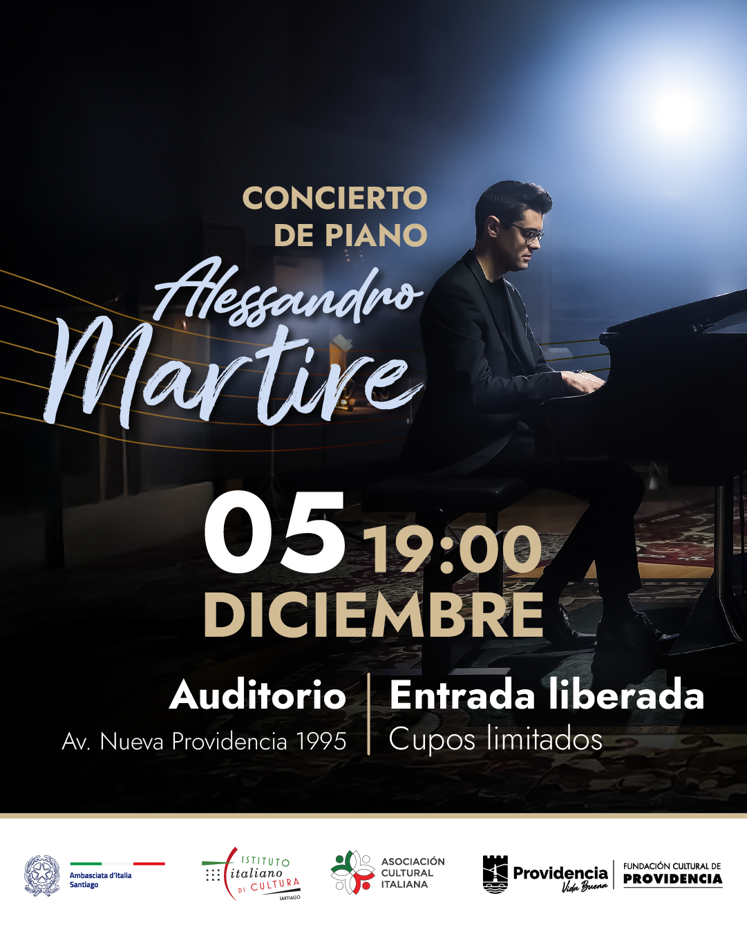 El concierto es organizado por el Instituto Italiano de Cultura, Oficina Cultural de la Embajada de Italia en Chile, en colaboración con la Fundación Cultural de Providencia.