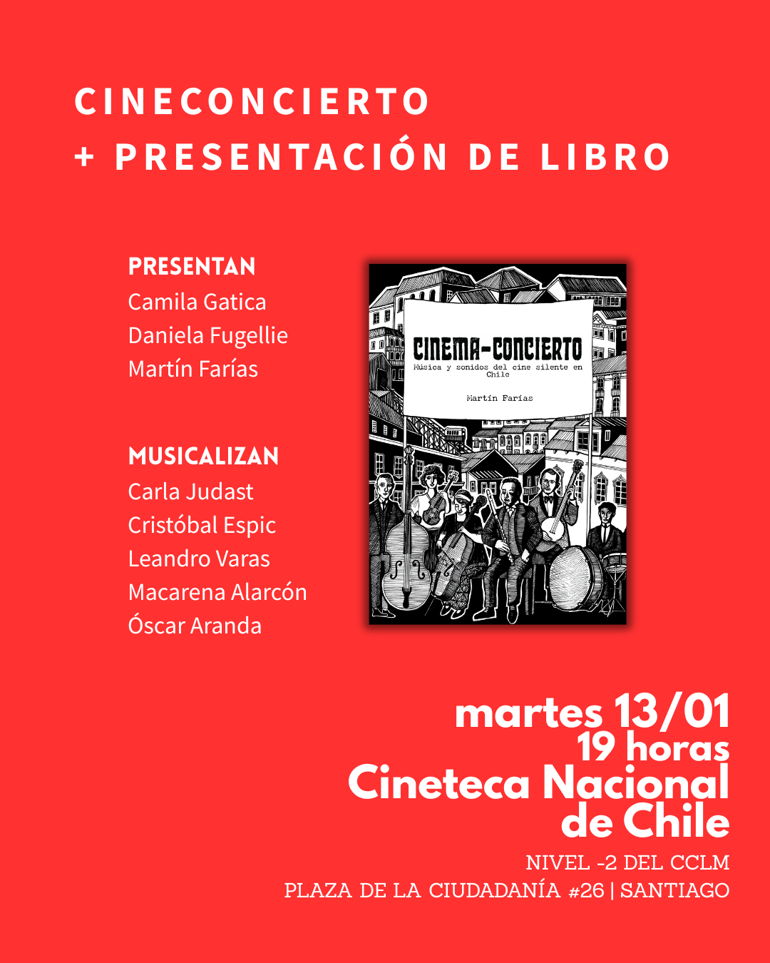 «Cinema-Concierto», escrito por el musicólogo Martín Farías y publicado por el sello editorial Historiográfica, será presentado por su autor, acompañado por la historiadora Camila Gatica y la musicóloga Daniela Fugellie.