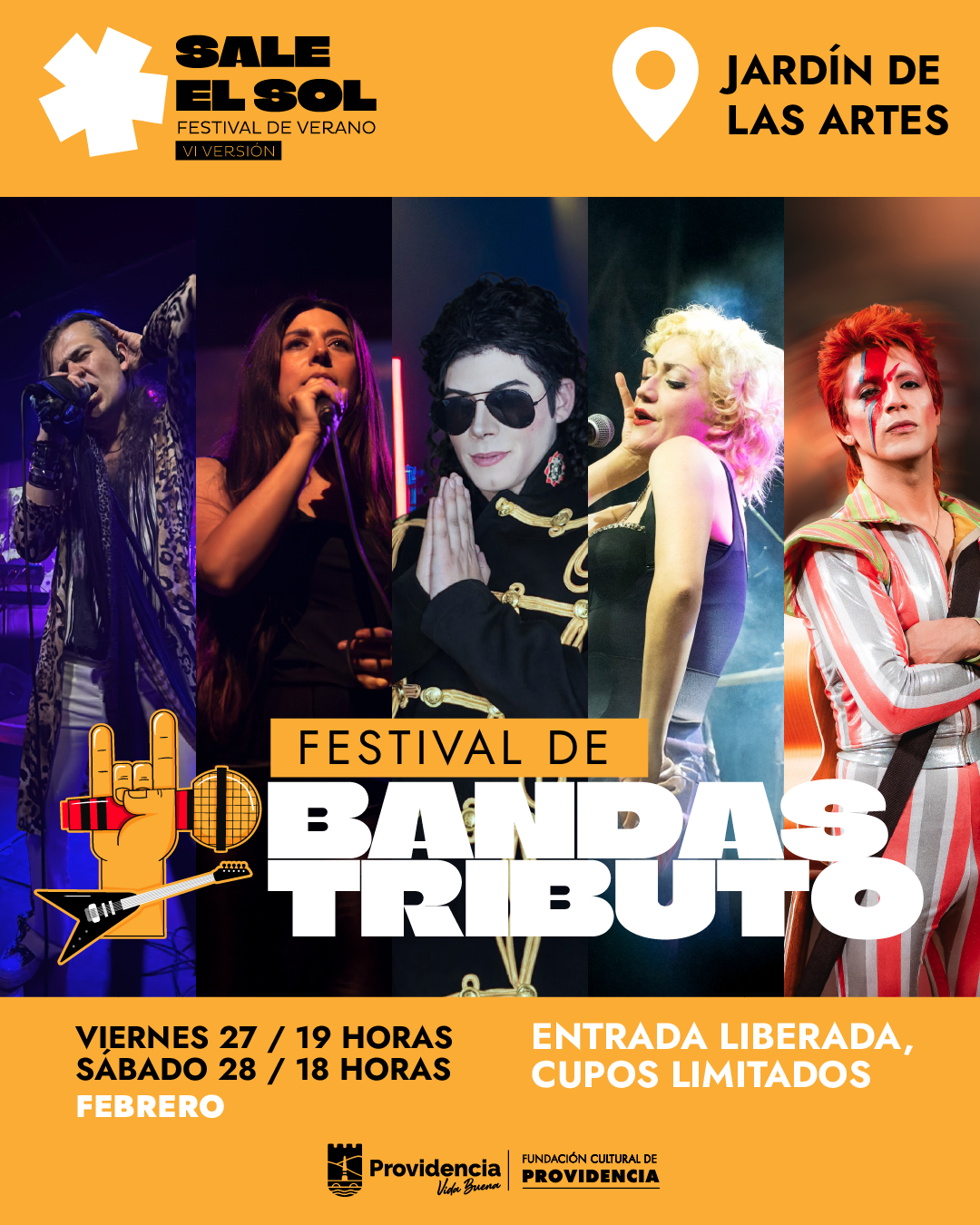 Con una especial convocatoria a celebrar el fin del verano, el VI Festival de Verano “Sale el Sol” de Providencia, culminará sus actividades con la presentación de cinco bandas tributo a reconocidos artistas íconos, como Michael Jackson, Madonna, Aerosmith, Bowie y The Cranberries.