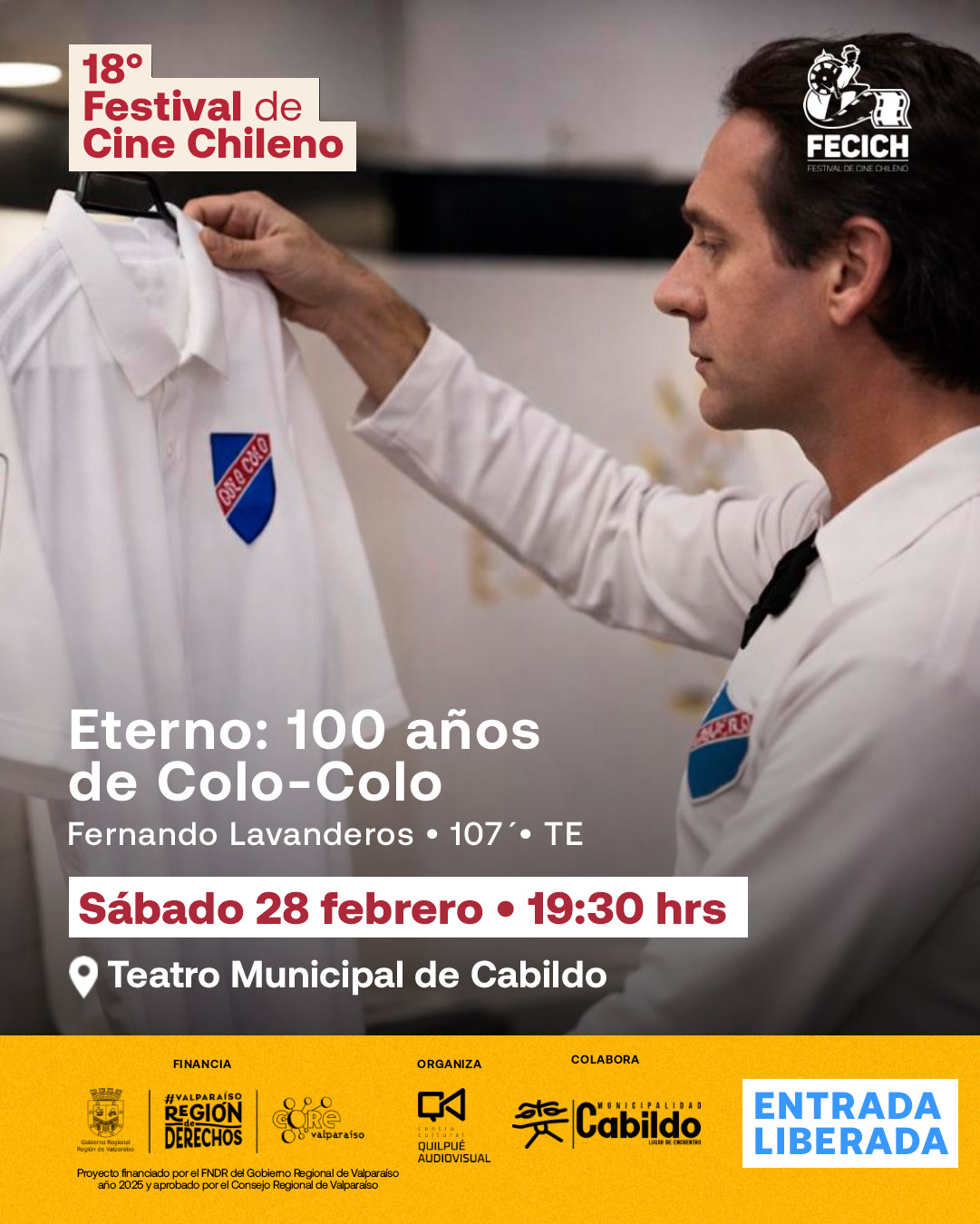 En esta oportunidad se exhibirá el largometraje Eterno: Cien años de Colo-Colo, dirigido por Fernando Lavanderos (Sin Norte) y producido por Fábula. El documental recorre la historia del club deportivo Colo-Colo, considerado el más influyente del país, y propone un viaje por su legado deportivo, social y cultural.