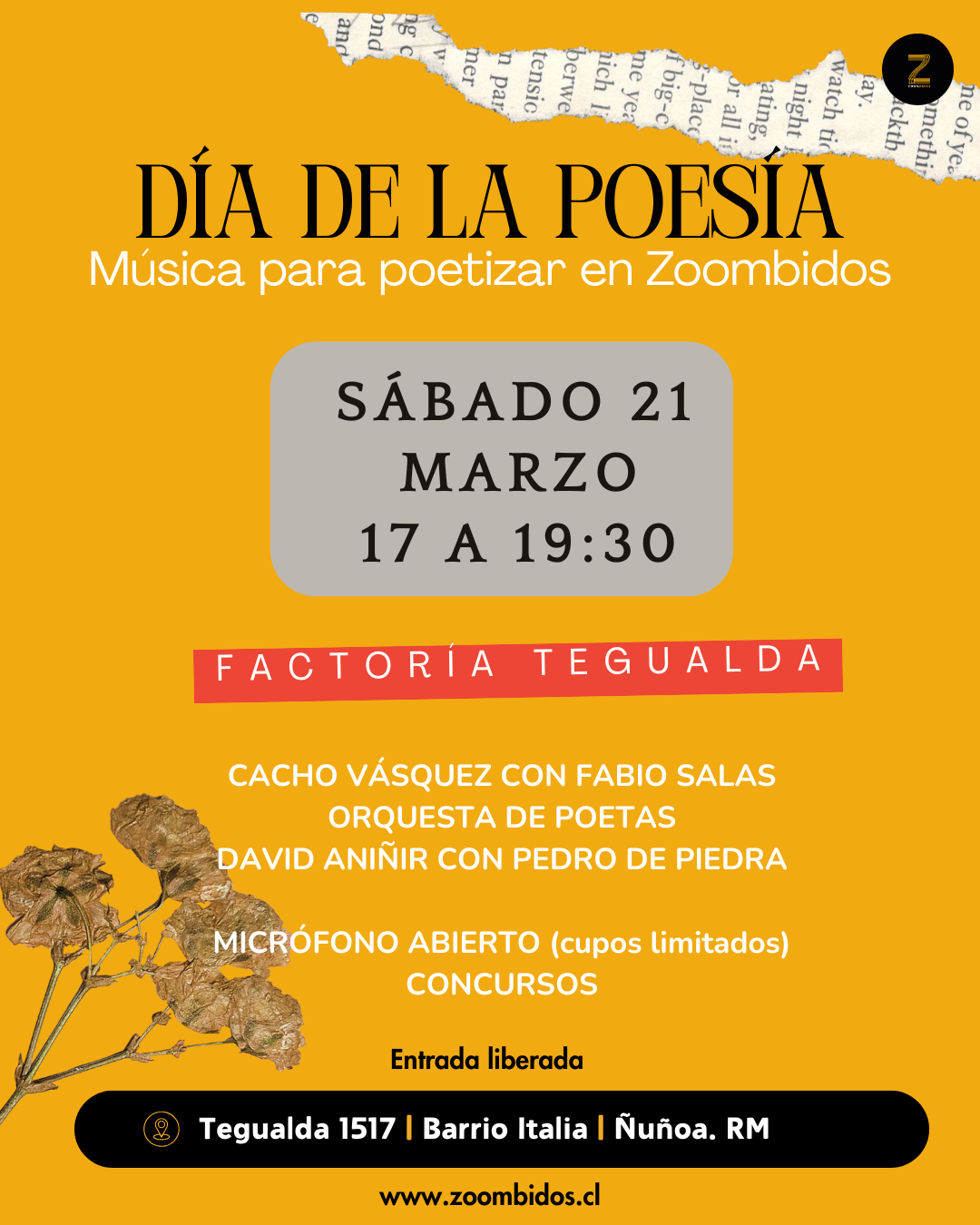 La jornada es organizada por Zoombidos, disquería y librería musical, para conmemorar el Día Mundial de la Poesía, reconocido por la UNESCO desde 1999.