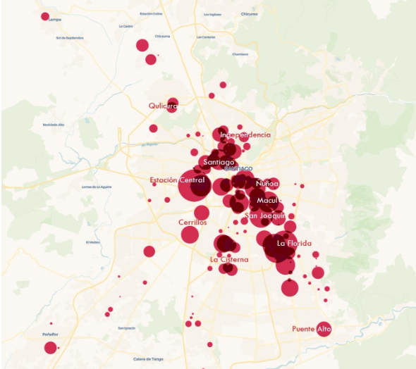 El análisis reveló que la mayor concentración se observa en el centro y sectores cercanos a Santiago Centro y Estación Central, donde densificación es mayor. En estas comunas existen 1.750 y 845 unidades disponibles respectivamente.