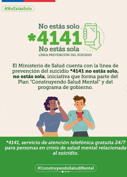 Si experimentas una crisis de salud mental o conoces a alguien que la necesite, puedes llamar al *4141 desde un celular, disponible las 24 horas del día, o a Salud Responde al 600 360 7777.