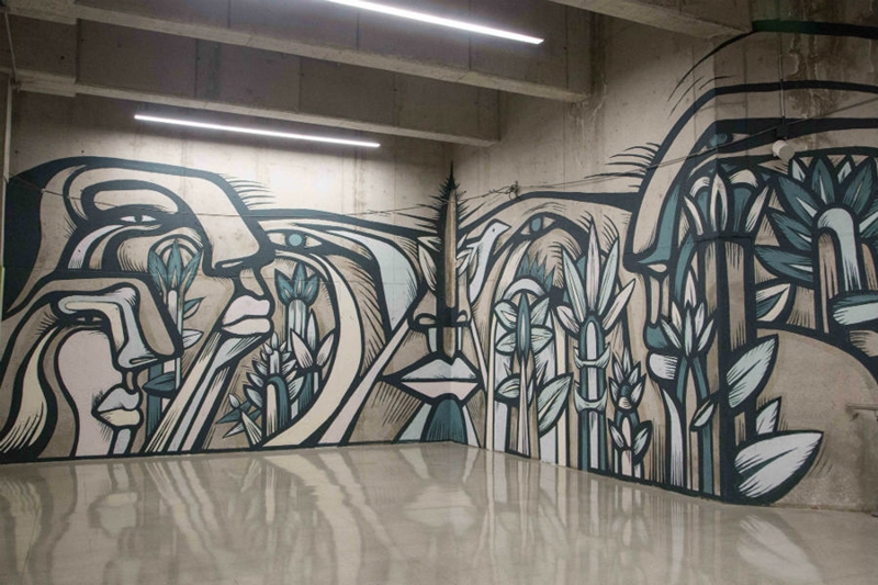 Paisajes comunes, es el nombre del mural del artista Alejandro Mono González que está en la estación de Metro Franklin (Combinación líneas 2 y 6 ). Créditos Foto: Valentina Miranda Vega.