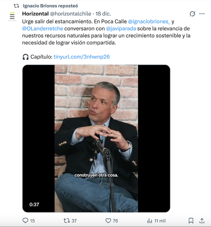 Cómo crecer en el siglo XXI. Esta semana elegí un posteo que me gustó a mí. Es un clip del podcast de @Horizontalchile en el que el economista Óscar Landarretche y el exministro de Hacienda Ignacio Briones discuten cómo debería ser el nuevo ciclo de crecimiento y desarrollo para nuestra economía.