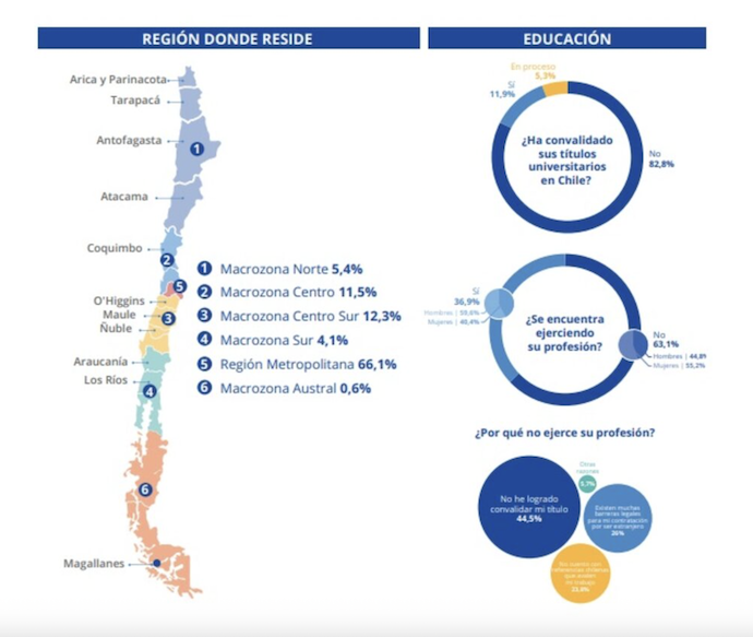 El documento cifra en 669.400 la población actual de migrantes venezolanos en Chile y subraya que es la que tiene una mayor intención de permanecer en el país y no volver a su patria de toda la región, con un 82%.