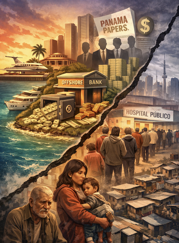 Paraísos fiscales, desigualdad y poder: el botín oculto del 0,1% vuelve a tensionar el debate. A diez años de los Panama Papers, Oxfam advierte que la riqueza no gravada que el 0,1% más rico de la población mundial esconde en paraísos fiscales, supera lo que posee la mitad más pobre del planeta, reabriendo un debate que en Chile también resuena: desigualdad y privilegios tributarios.