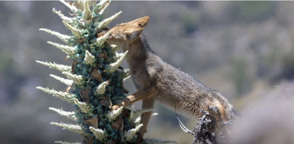 Un registro inédito en la cordillera de Santiago abrió una nueva línea de investigación sobre la interacción entre fauna y flora nativa: durante meses, el fotógrafo e investigador Bernardo Segura documentó a zorros culpeo alimentándose del néctar del chagual –planta endémica de la zona central que florece solo una vez en su vida tras décadas de crecimiento– y transportando polen adherido a su hocico hacia otras flores.