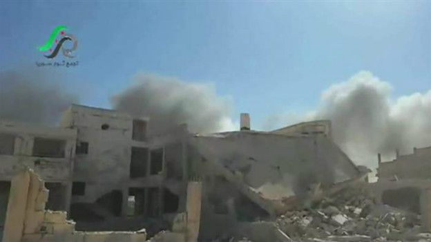 En la red social Twitter, el grupo de voluntarios Defensa Civil Siria denunció que los ataques golpearon un almacén para distribuir pan, que también sirve de sede para el consejo civil local.