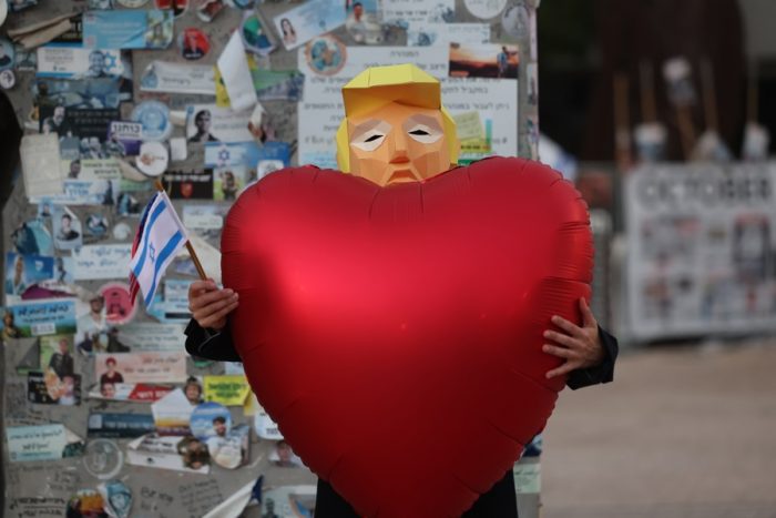 Manifestantes agradecen a Trump en Tel Aviv. EFE/EPA/ABIR SULTAN