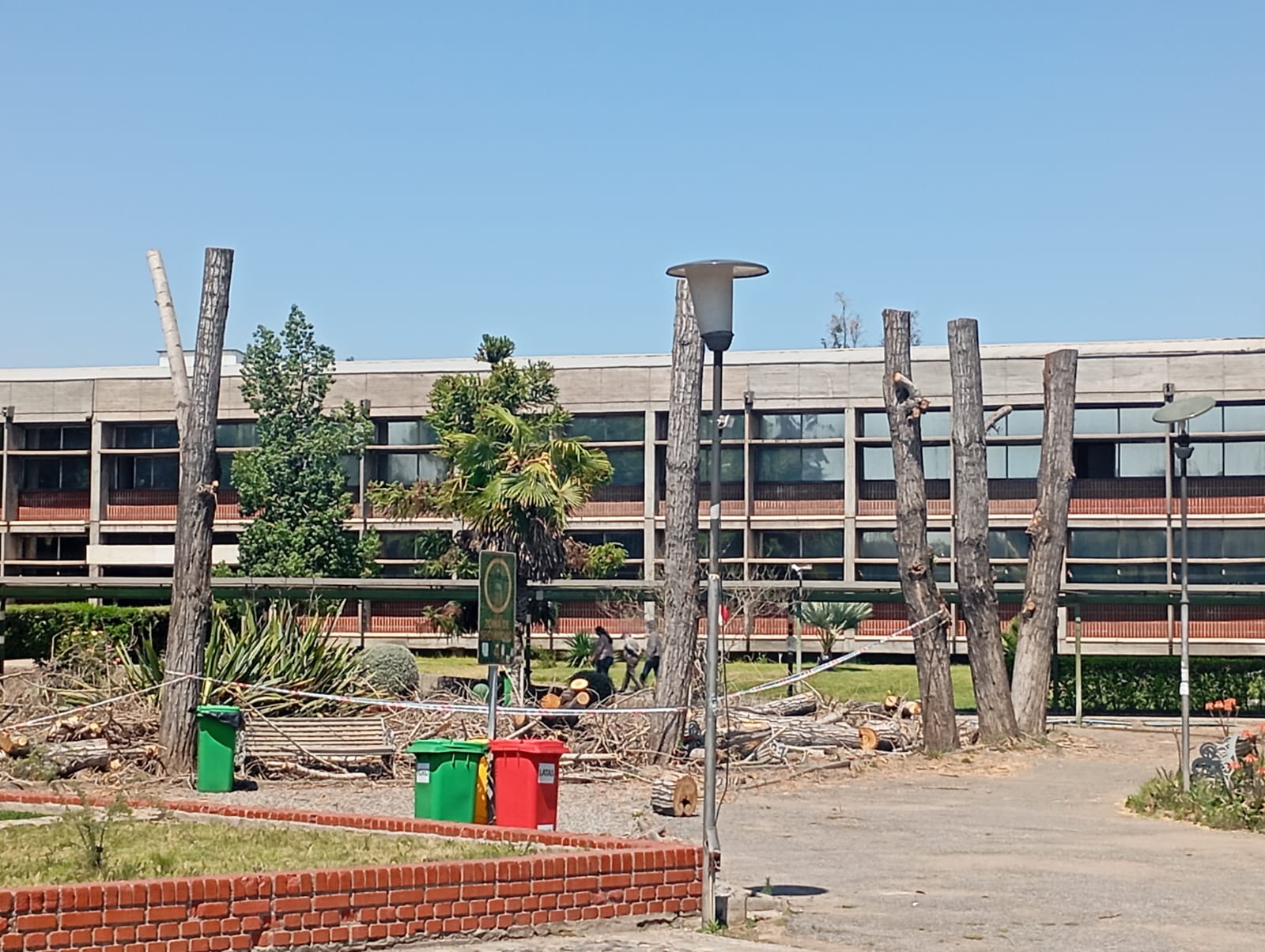Decenas de árboles que han adornado el campus por décadas, mutilados sin ninguna consideración técnica, estética o incluso en un abandono absoluto de la ética profesional que se debe impartir en las aulas a las que acuden diariamente estudiantes que buscan adquirir el saber técnico y que son testigos de una aberración que repele a la técnica. Probablemente no habrá protestas de estos estudiantes, tal vez una queja o un comentario a sus profesores al terminar una clase. ¿Cómo fue posible? ¿En qué estaban pensando?