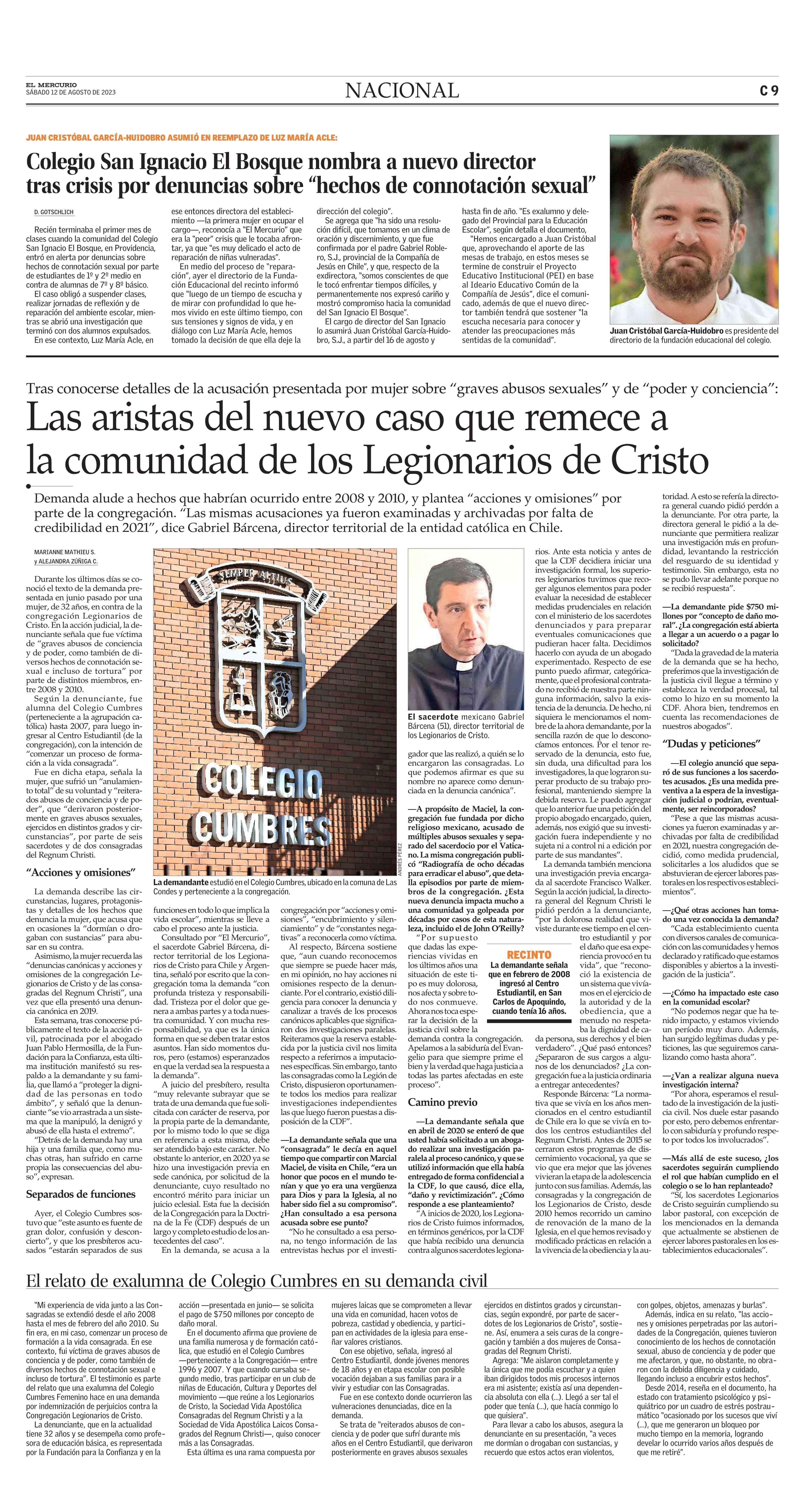 “Nunca se nos entregó una copia del informe, sino que solo se nos comunicó, por la Directora del Colegio Cumbres, que si bien el abogado había encontrado elementos de credibilidad respecto de los hechos denunciados, no había hallado antecedentes que inculparan específicamente a los capellanes de los colegios”, sigue el libelo.