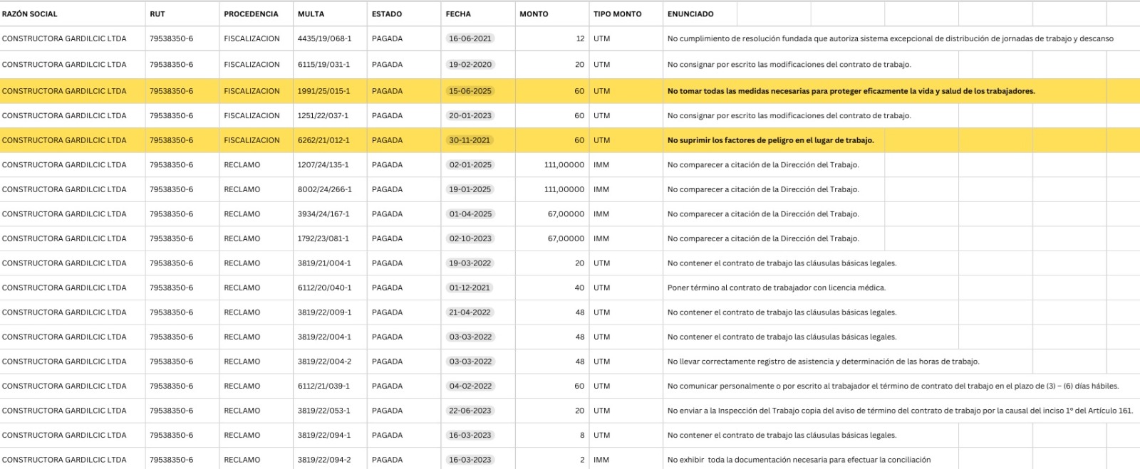 Pero eso no es todo, la más reciente corresponde a junio de 2025 y la razón: “No tomar todas las medidas necesarias para proteger eficazmente la vida y salud de los trabajadores”.