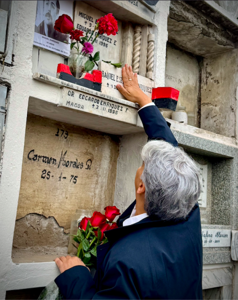 El candidato rindió homenaje este domingo a su padre en el Cementerio General.