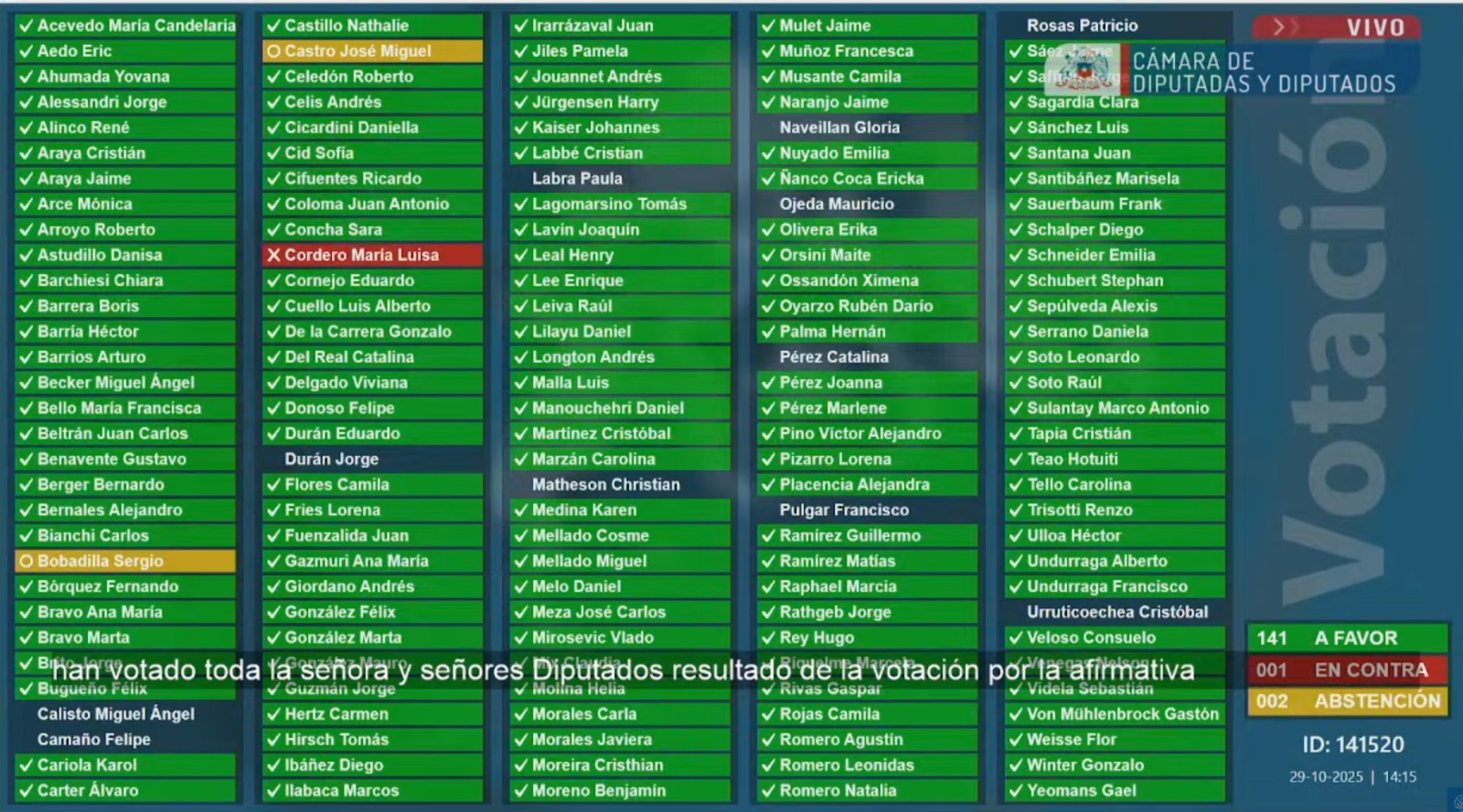 La Cámara de Diputados aprobó con 141 votos la acusación constitucional contra el juez Antonio Ulloa, quien quedó ahora a disposición del Senado. Solo una diputada votó en contra y dos se abstuvieron, en una jornada marcada por el amplio rechazo a la defensa del magistrado.