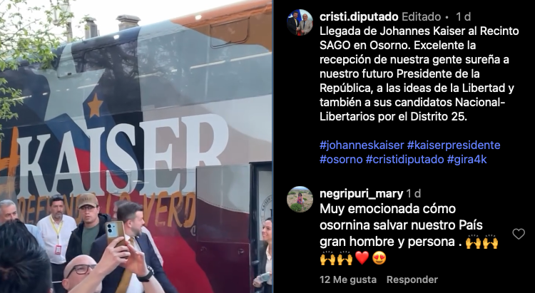 - Un ejemplo de ello es lo que ha hecho Johannes Kaiser, que el martes dio en Osorno su discurso más duro hasta la fecha, ante un público que, enfervorizado, aplaudió sus planes de abandonar cuanto tratado internacional ha firmado esta angosta y sufrida faja de tierra, lanzando de paso severas advertencias a Bolivia, donde la próxima semana hay cambio de presidente.