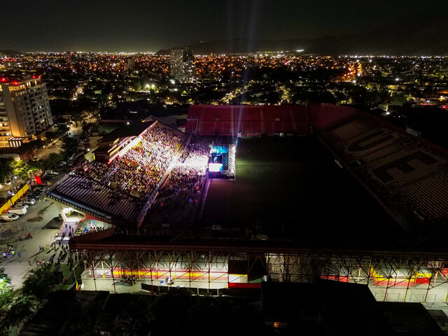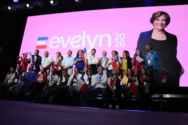 A más de 500 kilómetros, Evelyn Matthei (Chile Vamos, Demócratas y Amarillos) llenó —parcialmente— el Estadio Santa Laura. Su comando lo presentó como “el cierre de campaña más grande de Chile”, aunque el recinto se utilizó solo en un tercio y hubo reparos internos por la falta de capacidad para movilizar militantes.