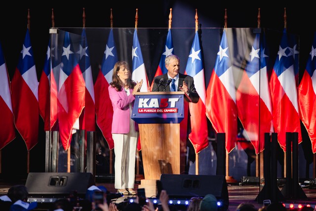 Pasadas las 19:30 en la Plaza Aníbal Pinto, junto a su esposa María Pía Adriasola, Kast salió al escenario detrás de su ya infaltable vidrio blindado. Y lo hizo con todo: “El domingo vamos a ganar y va a ser hermoso”, lanzó de entrada, en un tono abiertamente triunfalista. Aseguró que, si llega a La Moneda, “nos tocará mucho trabajo” y que habrá quienes intenten frenarlo, pero que él está dispuesto a “jugarse el destino de Chile”.