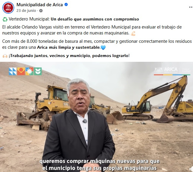 Sobre la acumulación de neumáticos en desuso, la municipalidad expresó que «se dio en el marco del inicio de un proceso de retiro y valorización, asociado a un convenio de colaboración suscrito por la Municipalidad de Arica con la empresa Valora Más, en conformidad con la Ley de Responsabilidad Extendida del Productor (Ley REP). Dicha acumulación correspondía a neumáticos retirados progresivamente desde distintos puntos de la comuna, con el objetivo de ser derivados a plantas de valorización autorizadas. El acopio era transitorio y se encontraba dentro del recinto de administración municipal«.