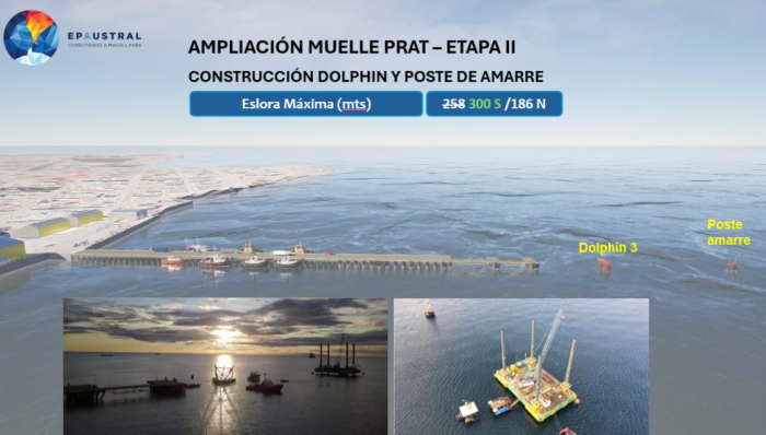 La operación del Oosterdam se enmarca en la finalización de la Etapa II del proyecto de mejoramiento y ampliación del Muelle Prat, ejecutado por EPAustral con una inversión cercana a 10 millones de dólares. La obra incluye un nuevo Dolphin de amarre (Dolphin 3), un poste de amarre, defensas y bitas de 100 toneladas, elevando la eslora máxima del frente sur de 258 a 300 metros.