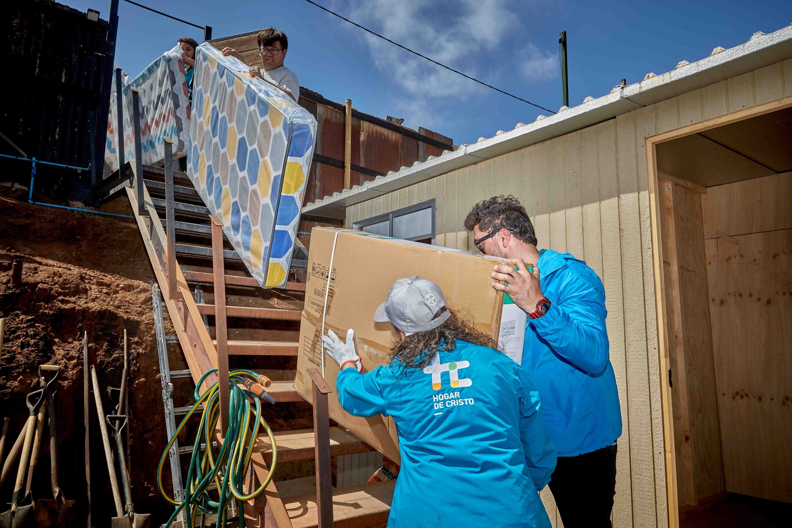 En entregas sucesivas de unos 30 kits por semana, Hogar de Cristo estará entregando estos kits de habitabilidad en el campamento Alto Sinaí a quienes ya recibieron las viviendas de emergencia construidas por Techo. Serán dos mil las casas habilitadas en el menor tiempo posible.