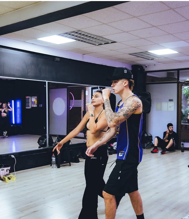 -Sí. Allí hago clases de reggaetón y coreógrafa como en estilos más new styles; hip-hop. (…) Bueno, hace poco estuve de gira con Chencho Corleone. Estuve primero haciendo las fechas en Chile. Me contactó la coreógrafa que es Karina Ortiz. Ella es la coreógrafa de Bad Bunny. Ella me escribió para unas fechas en Chile primero y ya luego me escribieron también del equipo y ella misma para unas fechas en Bolivia. Eran tres fechas. Así que nada, contenta, porque fue mi primera vez yéndome fuera del país con un artista nacional en gira.